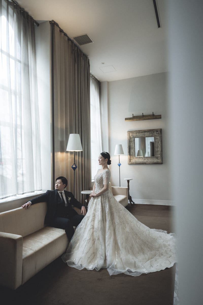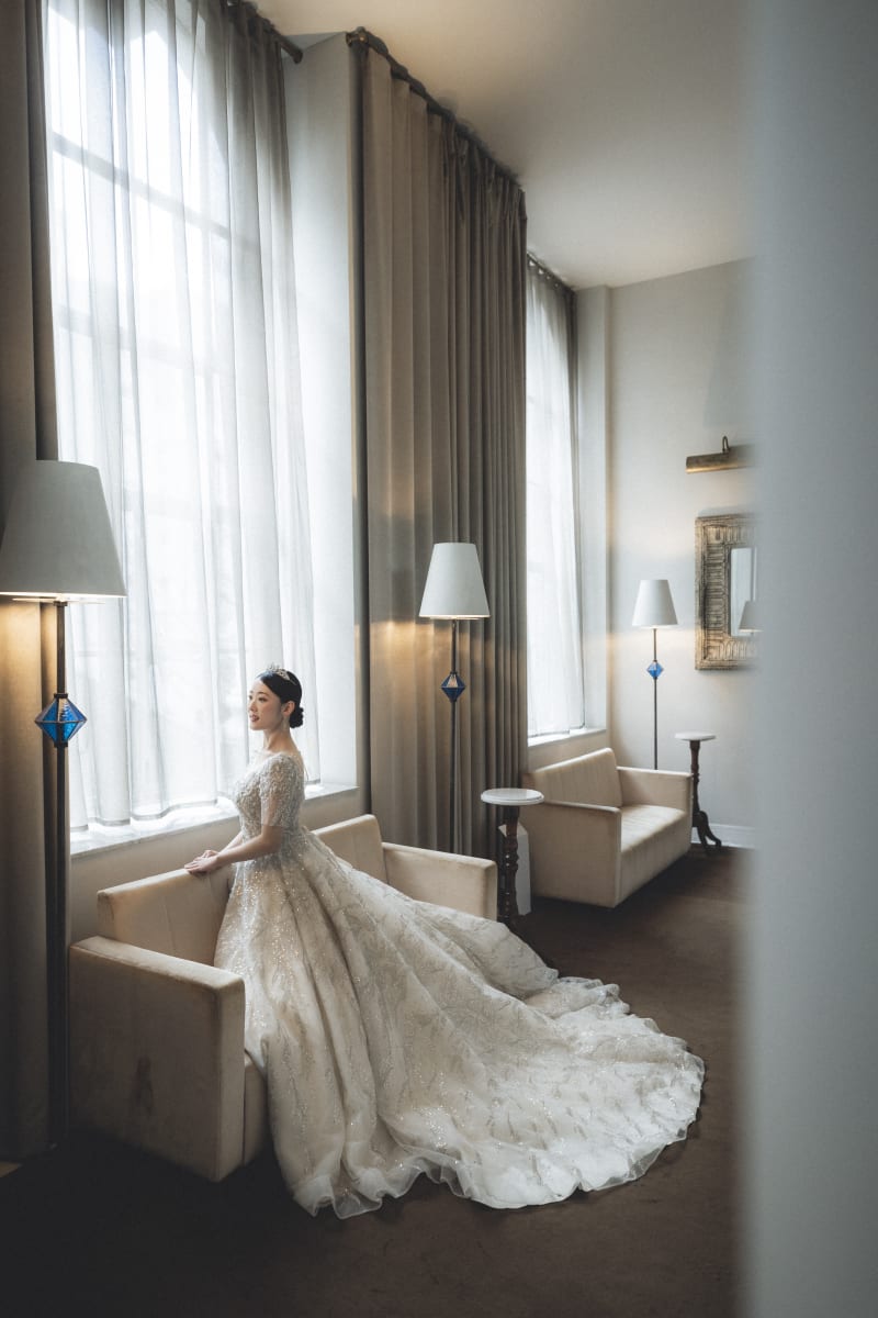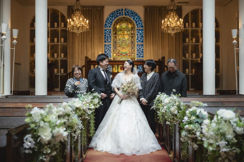 大きい窓からカーテンを通して優しい光が入るため、新婦さんのショットはもちろん、笑顔のショットも似合います!チャペルで挙式の流れを撮影して、バンケットで少し崩した雰囲気で写真を残すのもバリエーション豊富で素敵です!