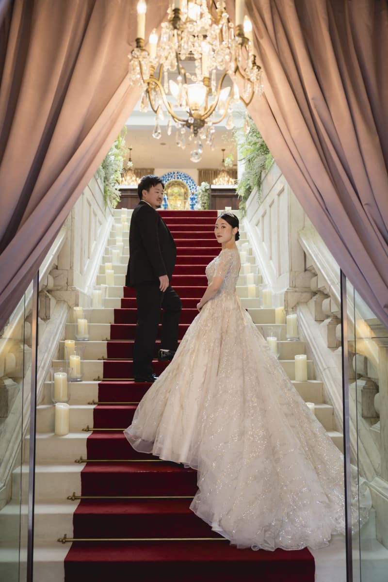まず入ると階段がお出迎え、ドレス姿で後ろ姿を撮影すると素敵ですね!