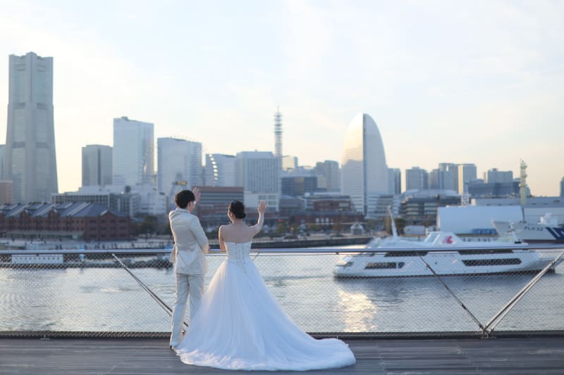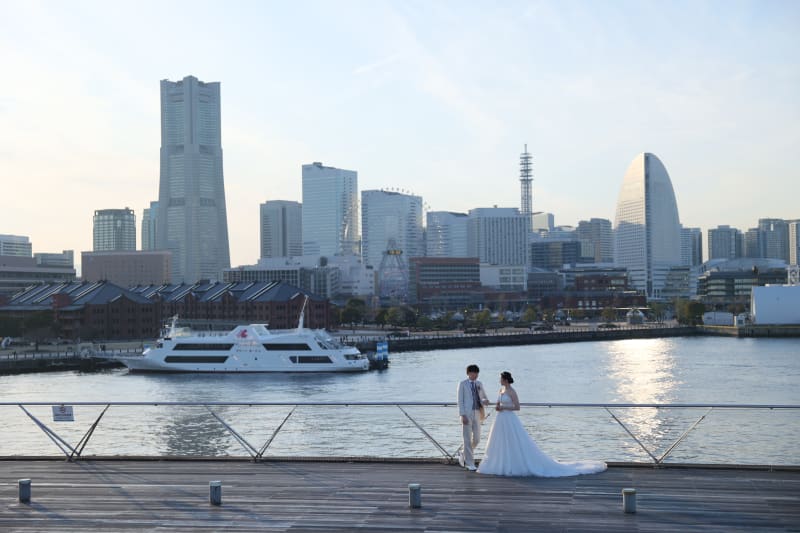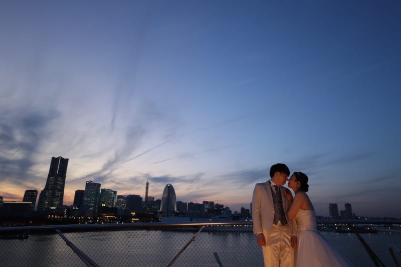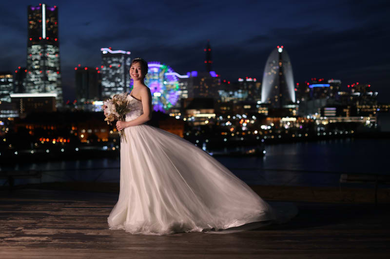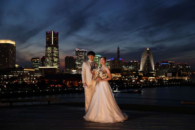 みなとみらいの夜景でフォーマルなお写真を撮るのが定番です!