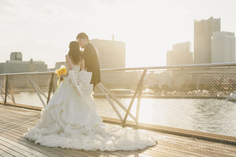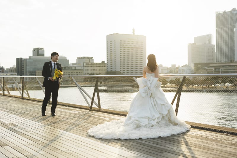 お二人が歩いてる後ろ姿のお写真♪ドレスも全体写って可愛いですね^^