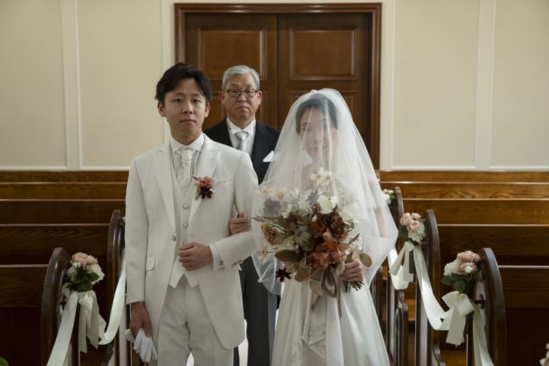 途中でふとお父様が新婦様を見つめられました。何を思っておられるのでしょう。