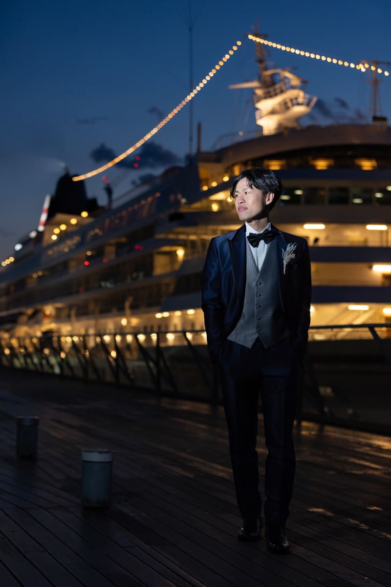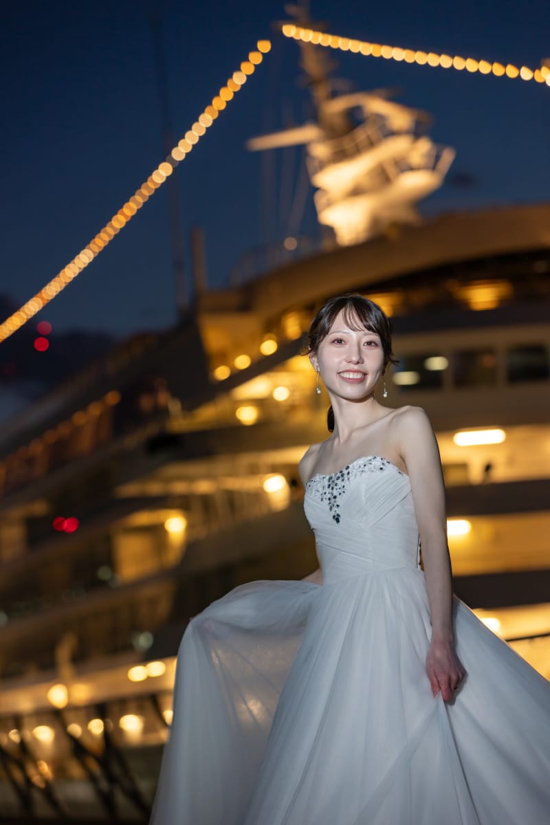 【横浜で記念日】汽笛が二人のスタートを祝う横浜のロケーションで美しい一枚を