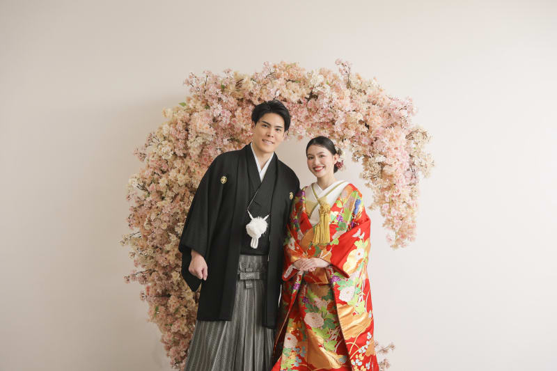 桜のアーチは、シンプルだけど、華やかさもあり、 ご新婦様の着物や表情をより美しく写します^^ とってもお綺麗でした!!