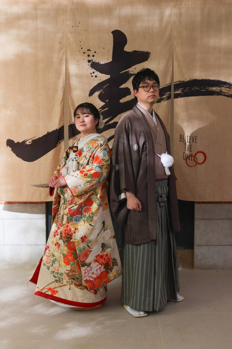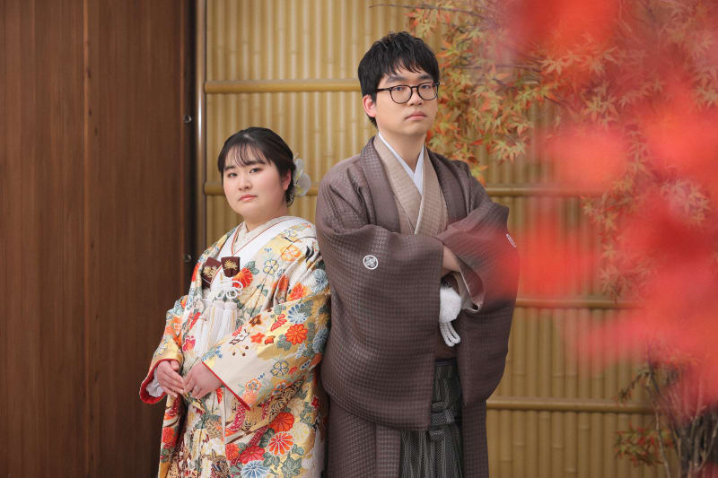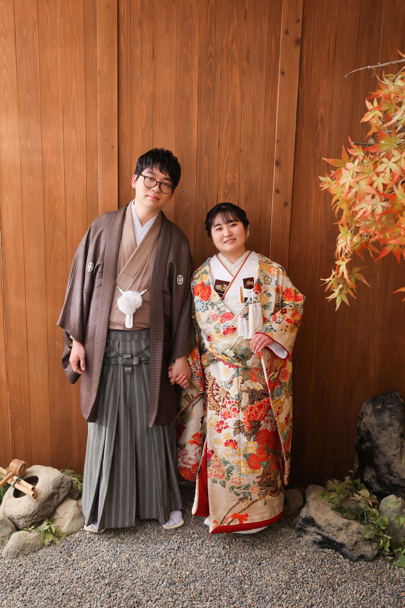 スタジオはお二人だけの空間でゆっくり撮影できます! 紅葉をいれてかっこいいですね