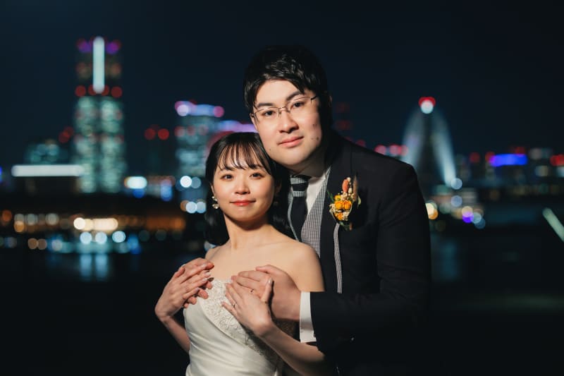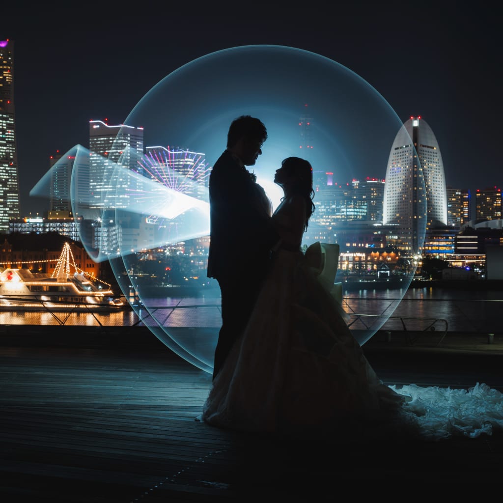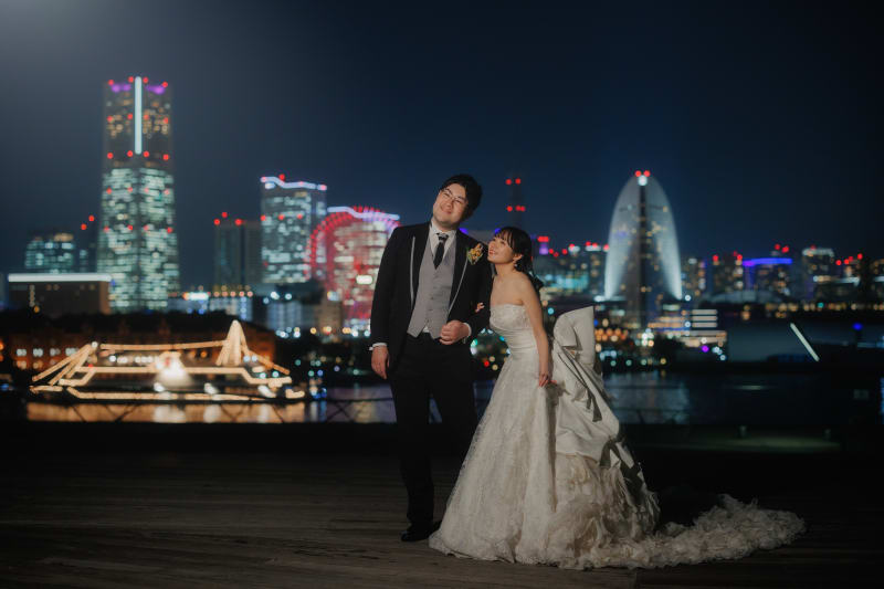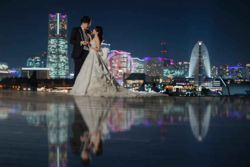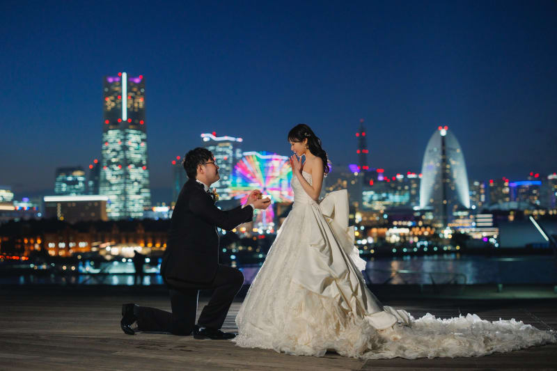 みなとみらいの夜景をバックにプロポーズシーンの撮影♪