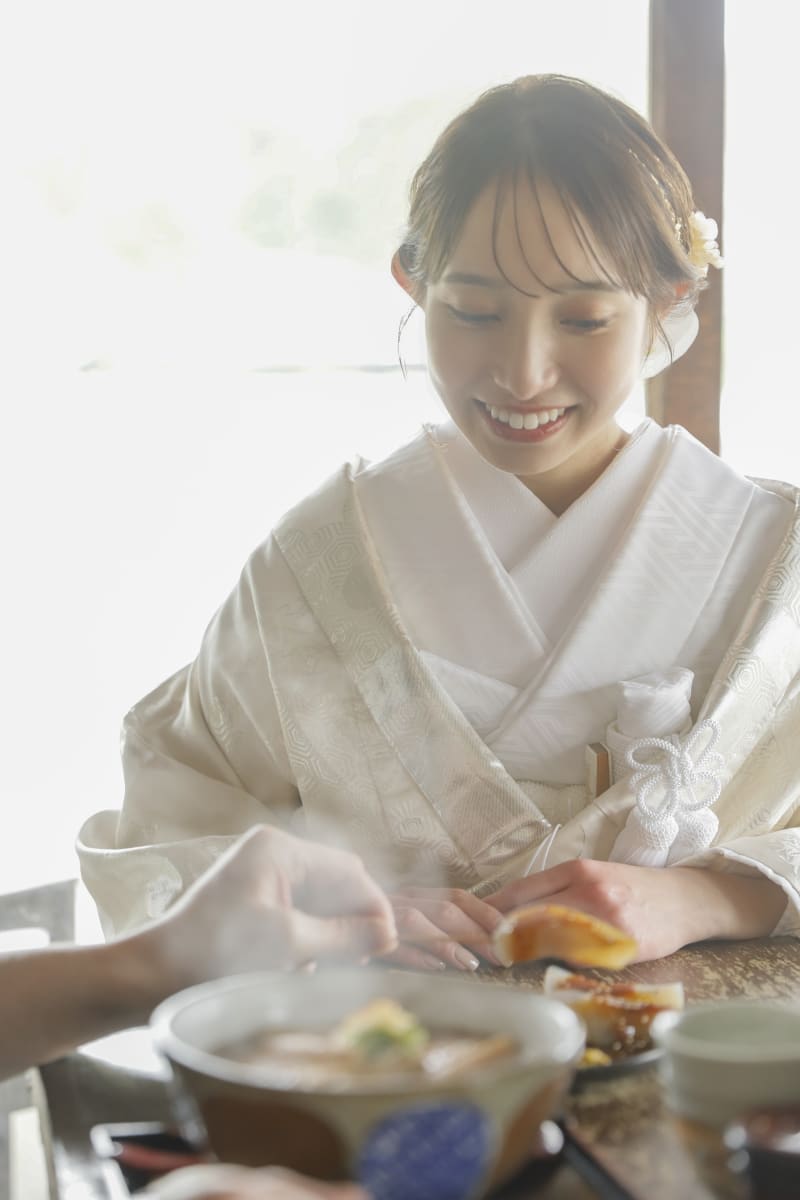 いまかいまかと待ち望む新婦様。新郎様が食べさせてあげます。