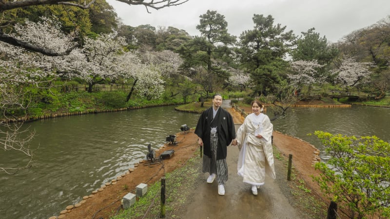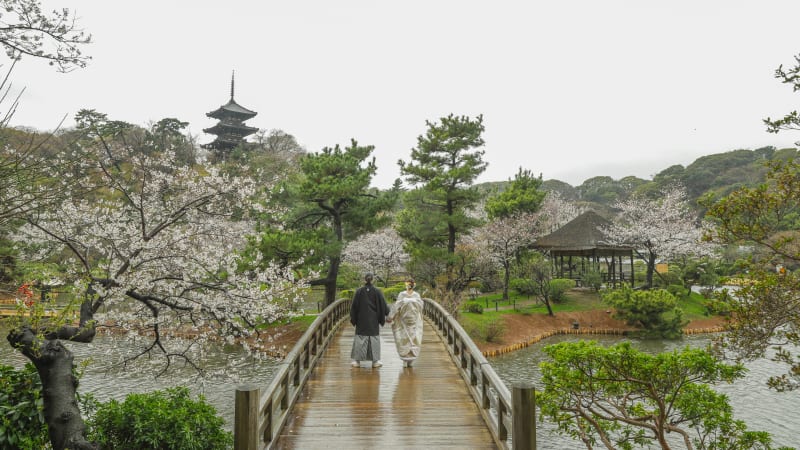 本日は桜満開の三渓園のご紹介です。この日はあいにくの雨で気温も低めだったのですが、桜はほぼ満開でした。元気いっぱいのお二人だったので、寒さも吹き飛ばしてくれました!