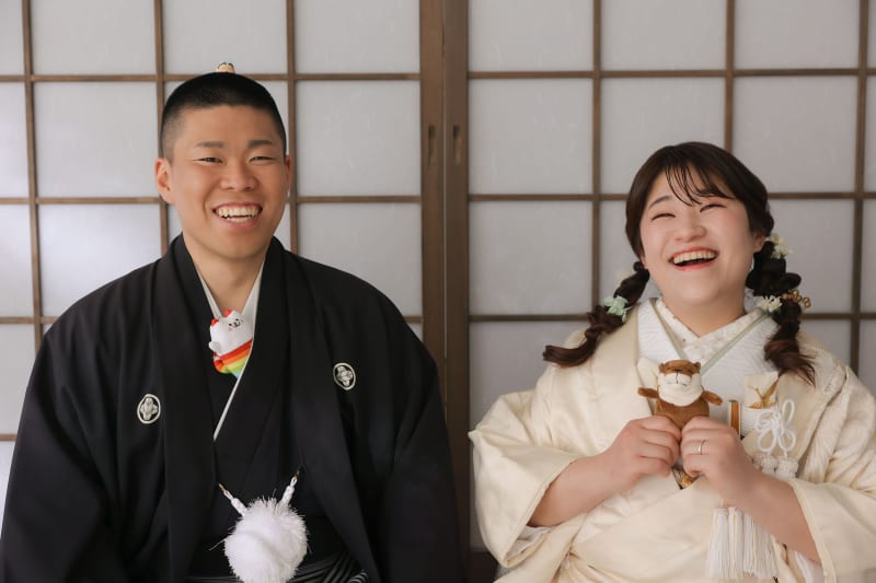 今回は屋内庭園で和装撮影を行いました!お二人の好きな漫画本やフィギュア、おにぎりなどお二人らしいたくさんのアイテム持ってきてくださって個性溢れるとっても楽しい撮影になりましたね^^