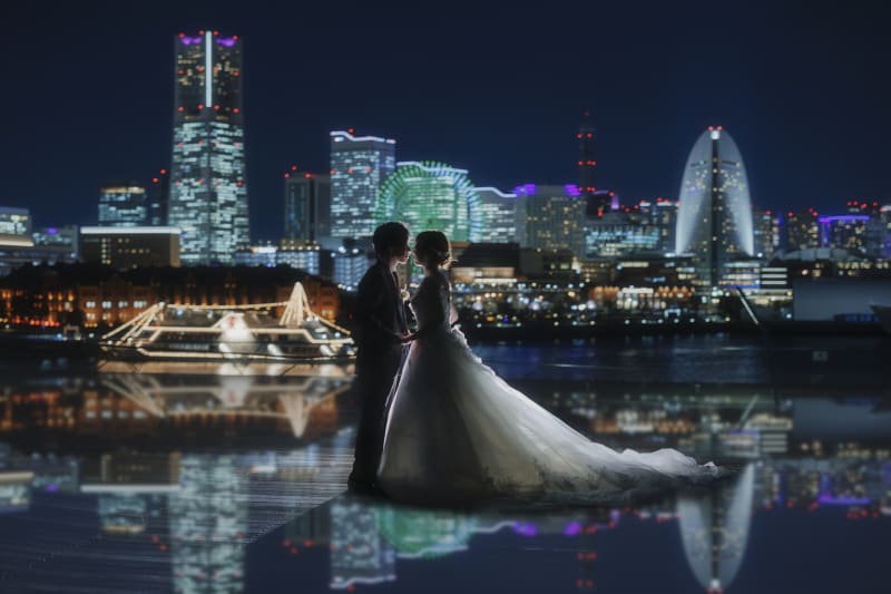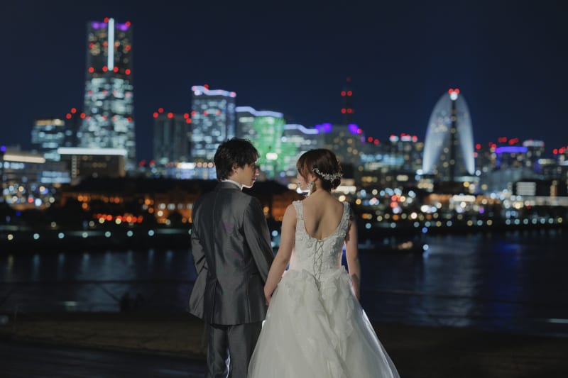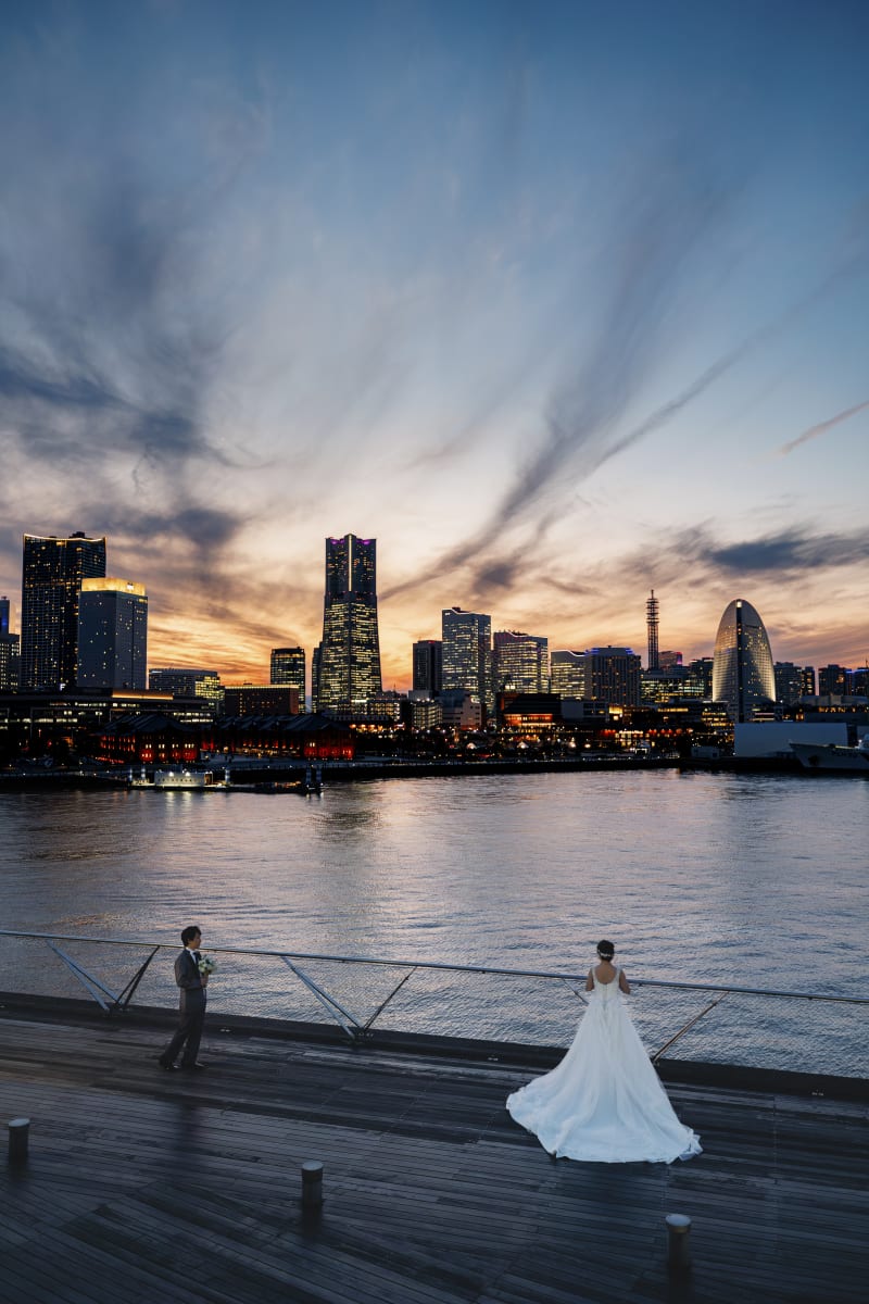締めはみなとみらいを眺めるお二人の後ろ姿のお写真で^^♪