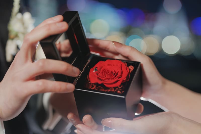 新郎様から新婦様へのプロポーズ写真♪ びっくりしてる新婦様の表情が可愛いですね^^