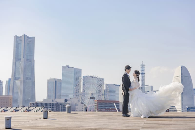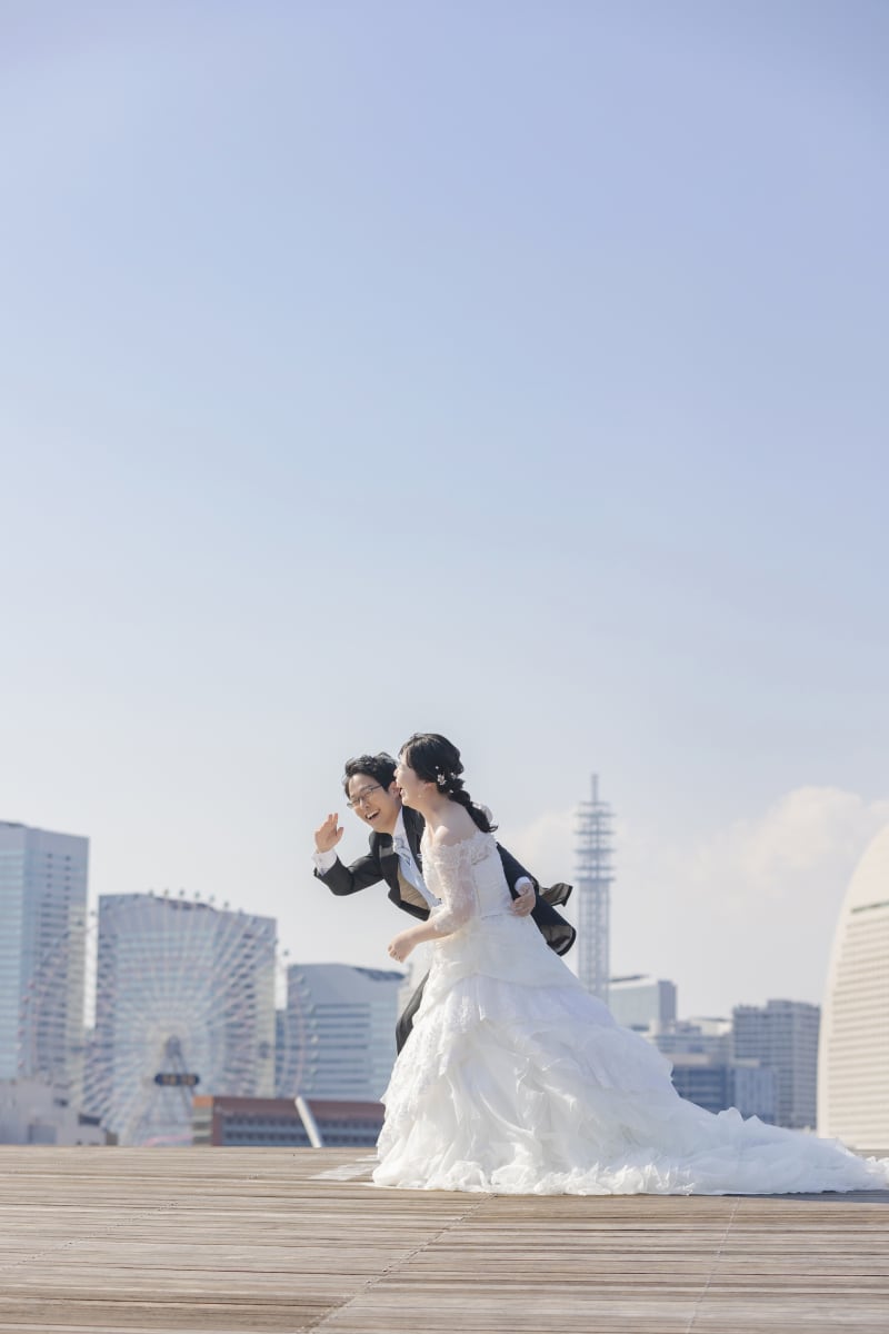 みなとみらいを背景に撮影するのはもちろん、マリンタワーや青空を背景に撮影させていただいたお写真までとっても素敵です!