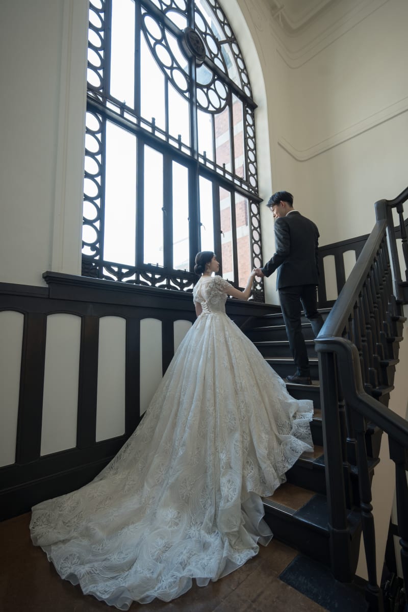 階段を使ったショットは、開港記念会館ならではの特別感が出せる、おすすめの構図です。