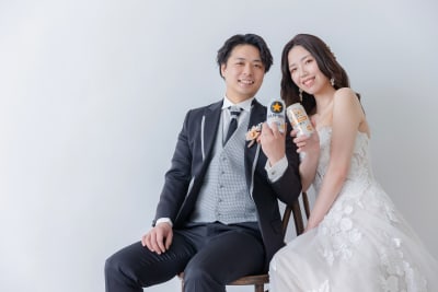 小物の持ち込みは自由となっているので、お二人の趣味、スポーツや食べ物、ゲーム機などを持ち込んでお二人だけの写真を一緒に作りましょう!!
