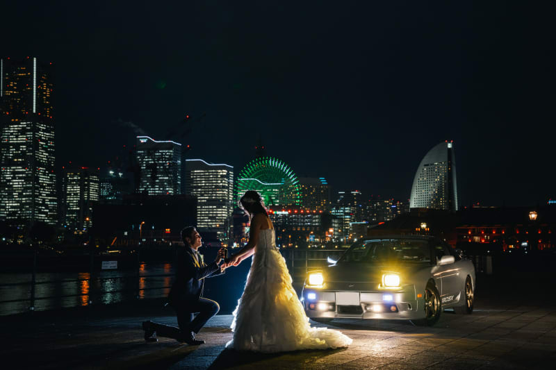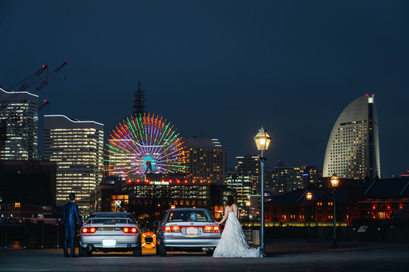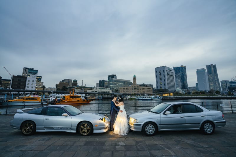 【横浜で記念日】汽笛が二人のスタートを祝う横浜のロケーションで美しい一枚を