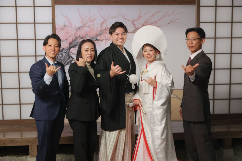 ご新郎様がアメリカ出身という事で、皆さんでアロハポーズ!