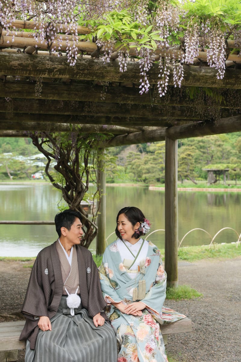 落ち着いた雰囲気の中、ゆっくりと園内を歩く2人を撮影しました。
