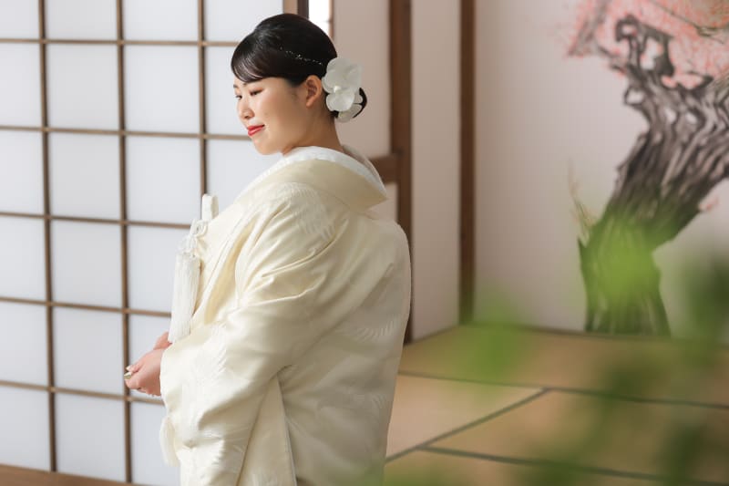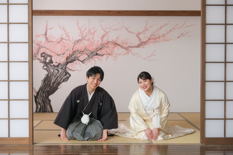 新婦様と新郎様ともに和装がとても良くお似合いで、自然な笑顔が何よりも印象的でした。