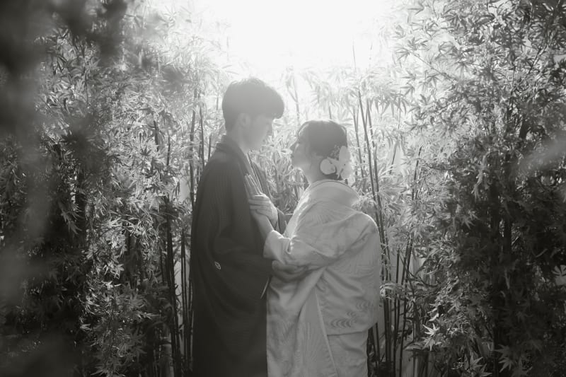 竹林に囲まれた写真。モノクロにすることでよりエモーショナルな雰囲気に!