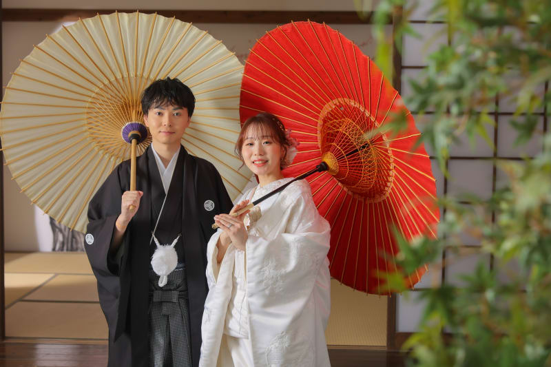 屋内庭園では和装でお二人の幼少期の写真を使った写真や、屋内庭園ならではの和室や桜、緑を使ったものにご注目ください!