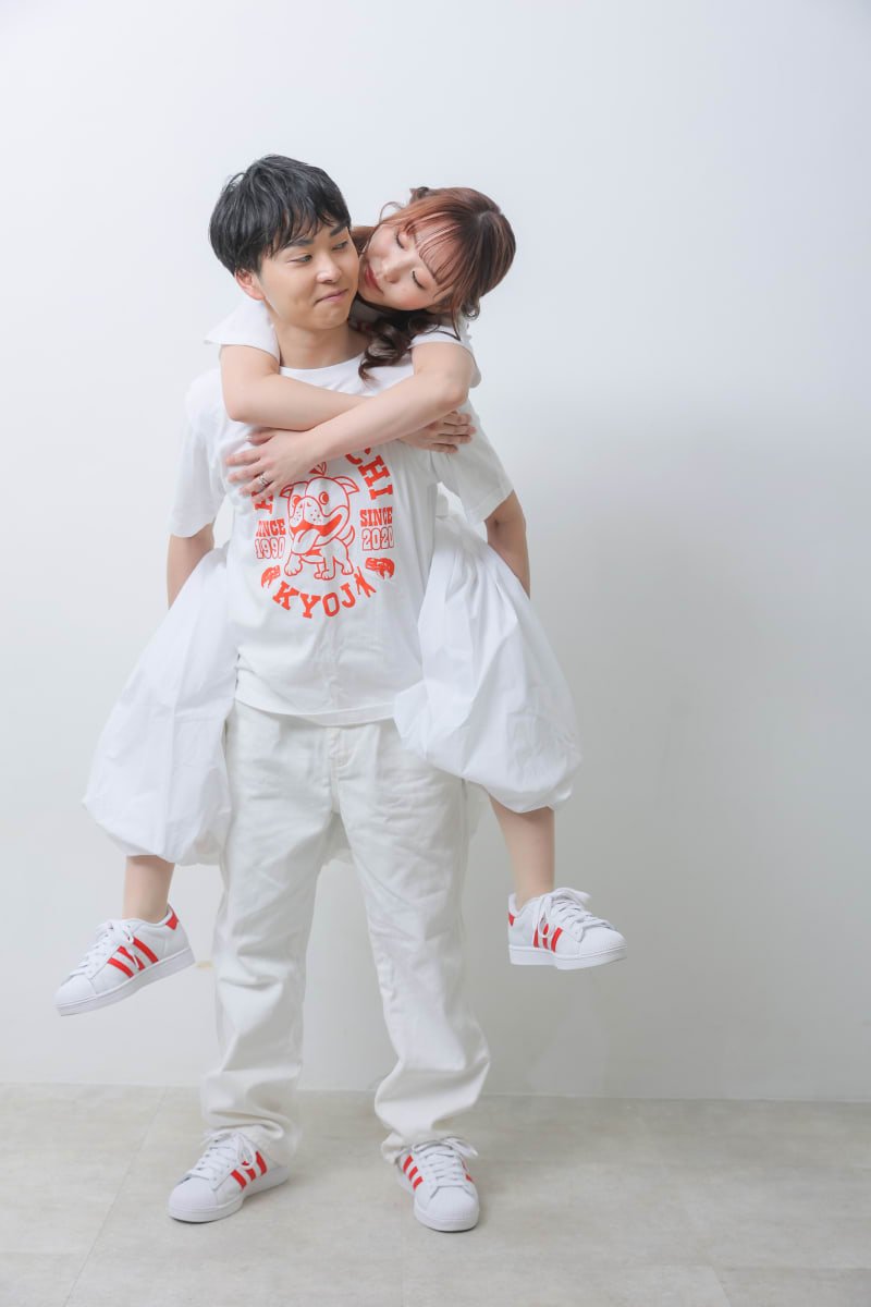 洋ハウススタジオでは洋装撮影とシンプルな白背景にお二人の私服で、お揃いコーディネートの可愛い写真にご注目です!