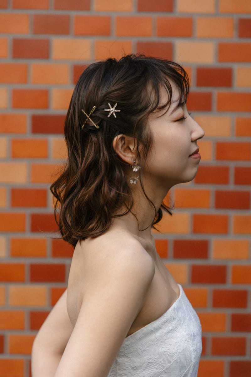 アクセサリーは星とゴールドピンを無造作につけておしゃれなヘアスタイルにしました!