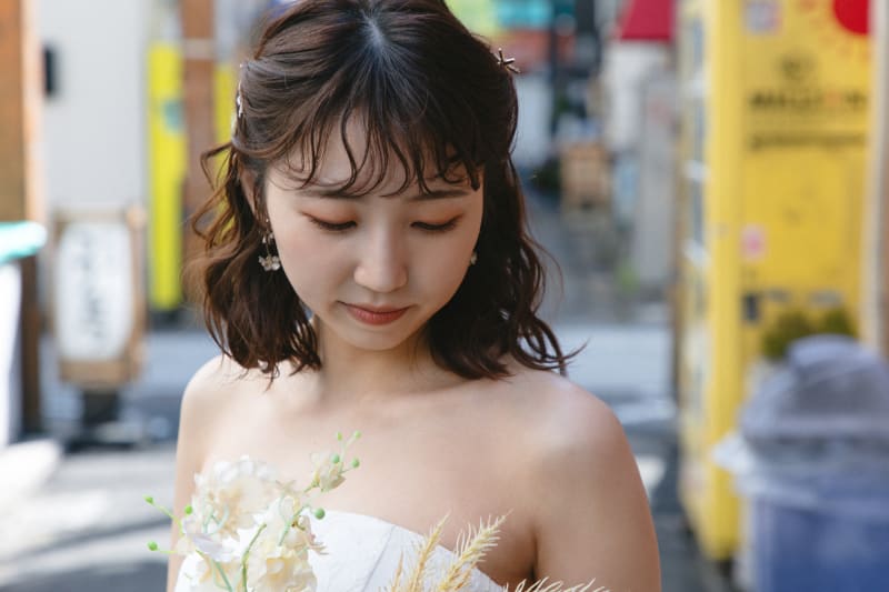 新婦さんの私物のカジュアルなジャケットを合わせて素敵なコーディネートにしています!