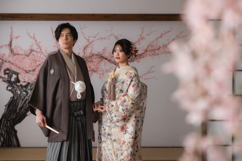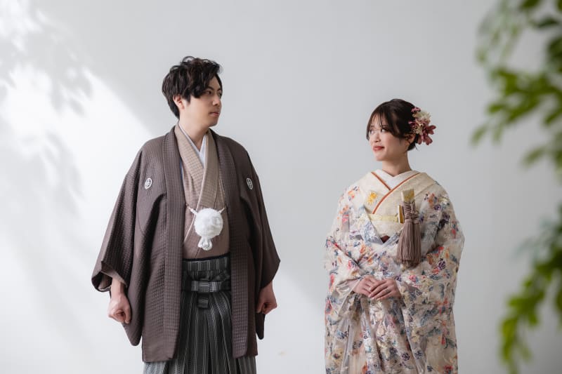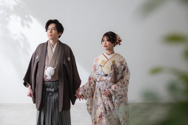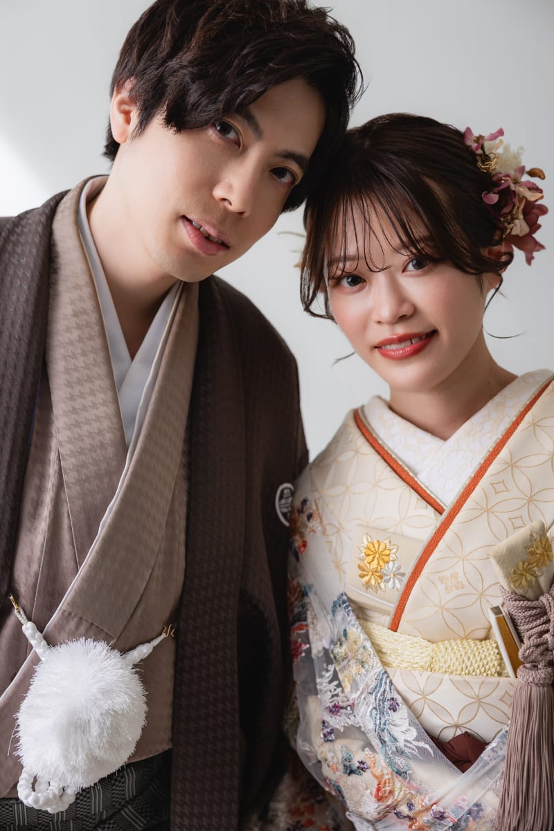 どちらも和装で撮影し、スタジオならではのシンプルな白背景や、ライトをうまく使ったスタジオにしか出せない雰囲気を見ていただきたいです^^