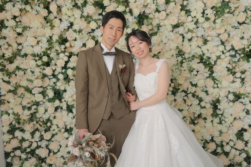 小物を使った撮影だけではなく、みなとみらい店の代表的な白いバラの背景でも撮影しました!