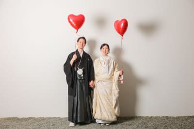 ハートの風船も可愛らしいですね。お二人の好きな物と一緒に撮るのもお二人らしさが出ていいですね!