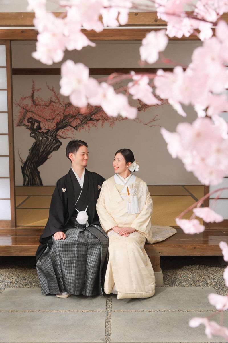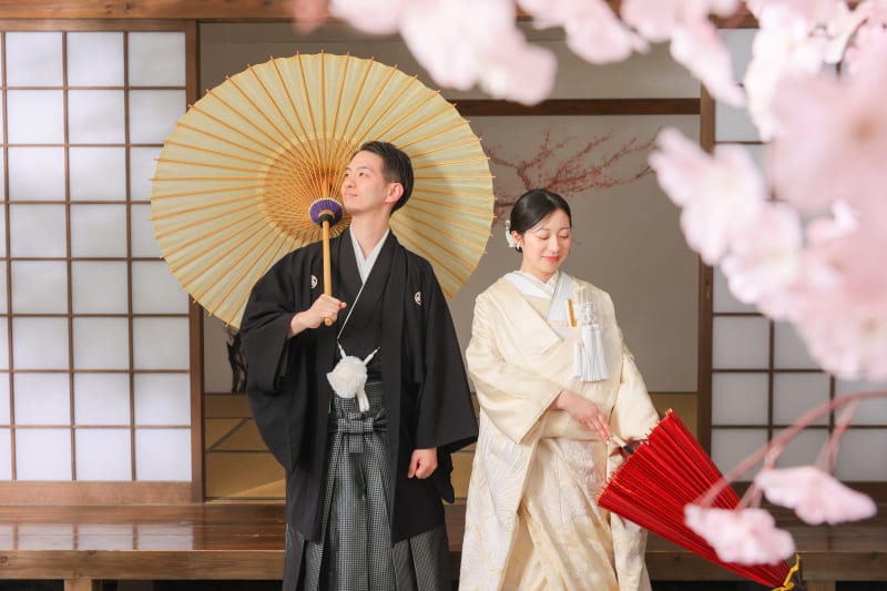 和傘を使った撮影。お二人の姿、品があって素敵です。