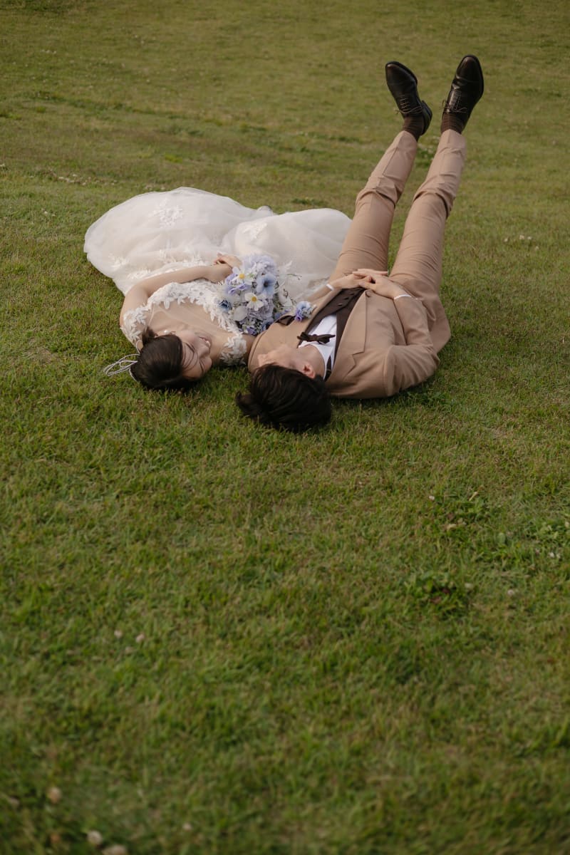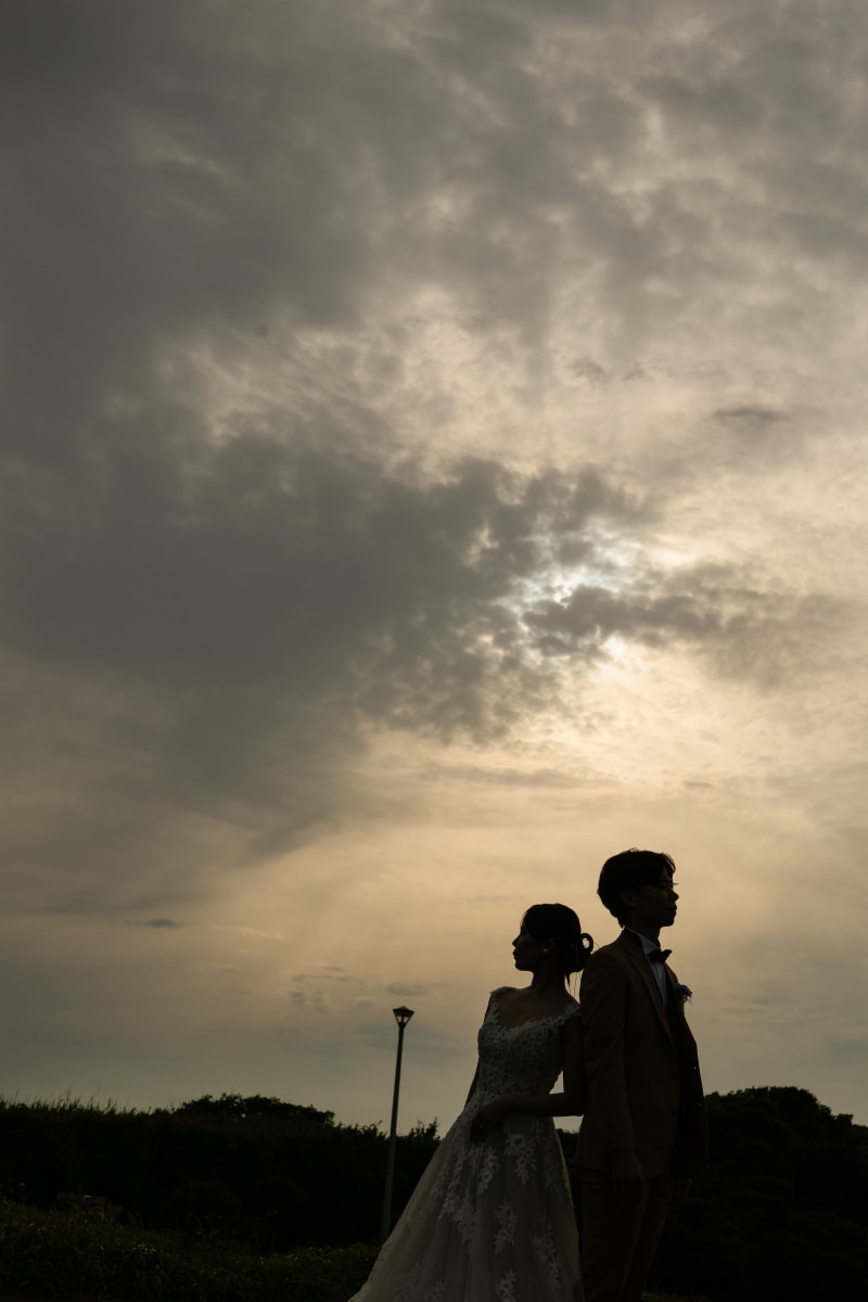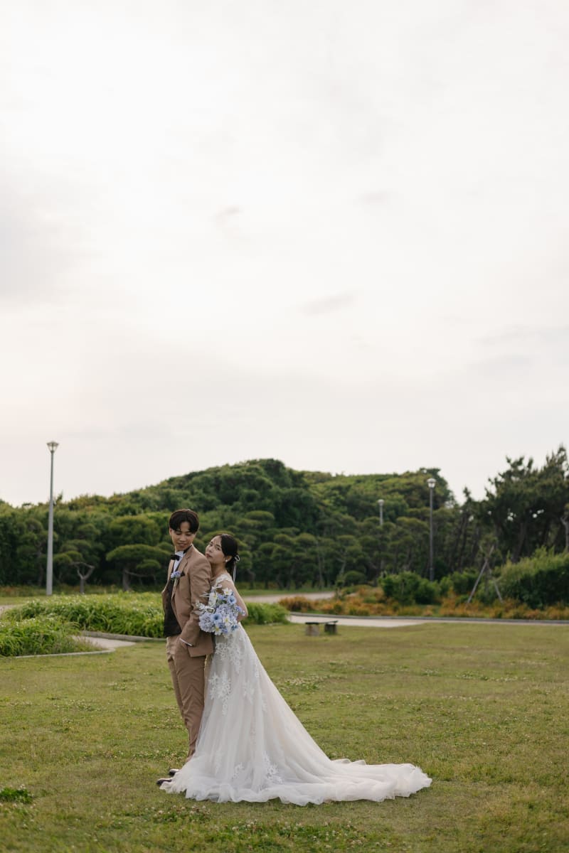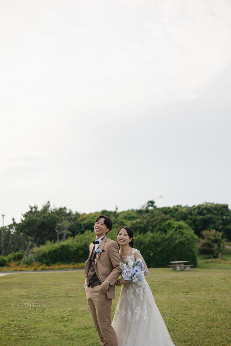 城ヶ島は自然にあふれる美しい場所で、その中でも特に印象的なのは、緑の野原とそこに沈む夕日の美しさです。このロケーションで、お二人の特別な瞬間を撮影することができるのは、毎回とても光栄です。