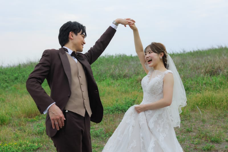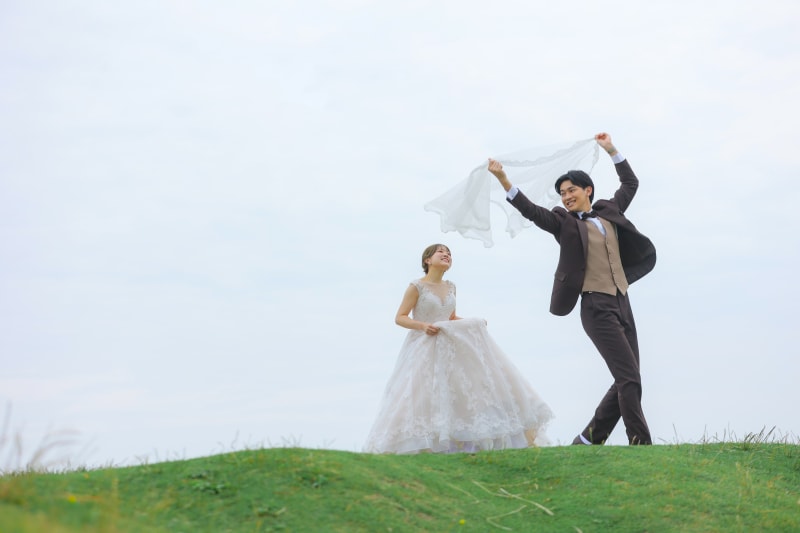 軽やかに舞うベールとともに走る姿が、開放感ある1枚に仕上げてくれています!