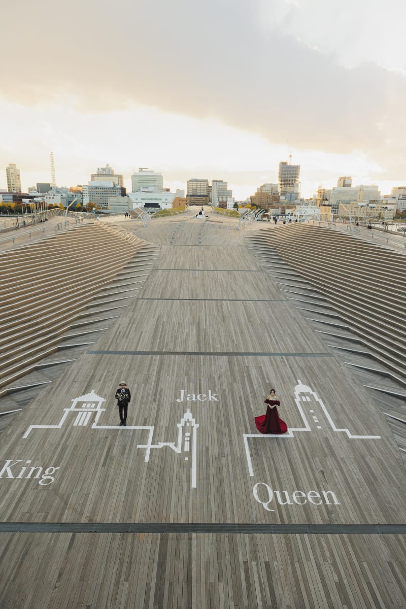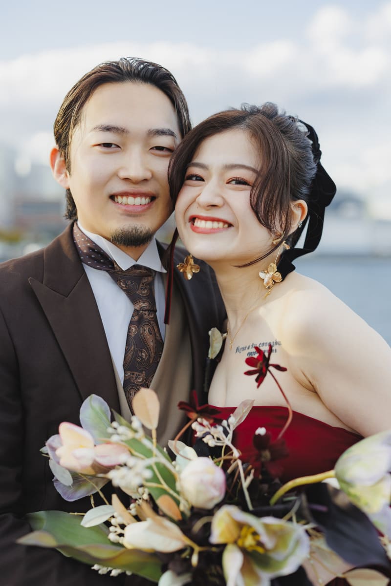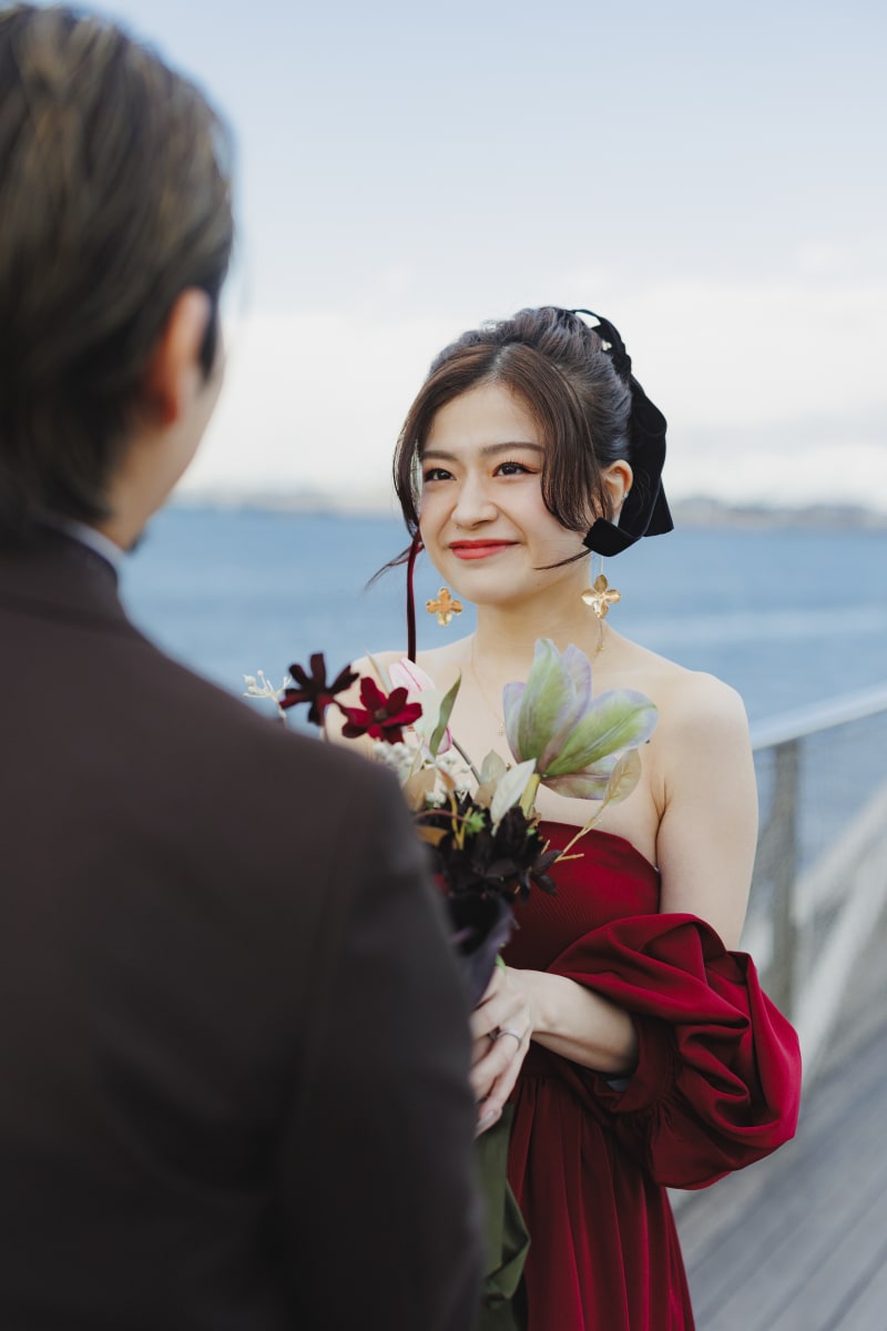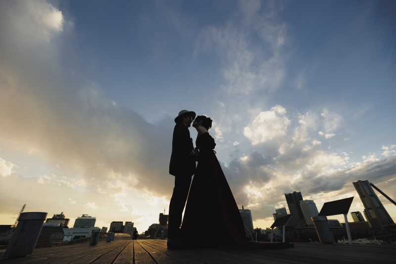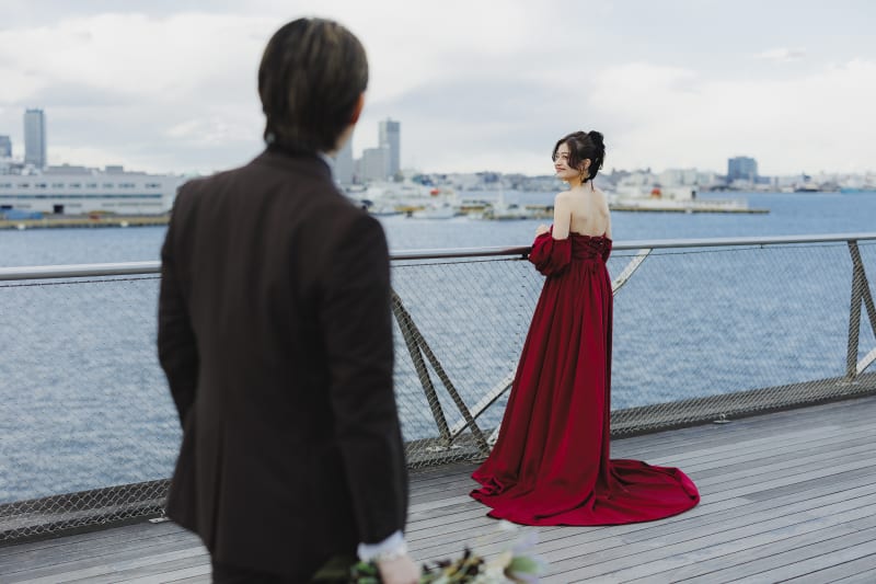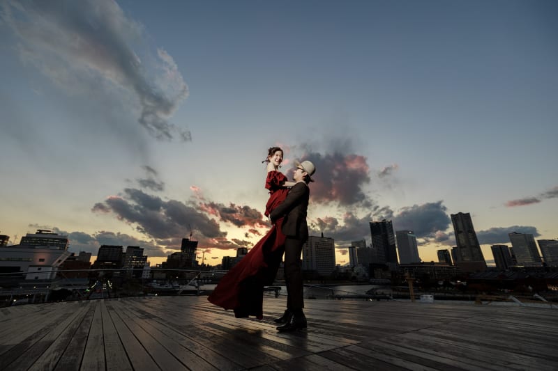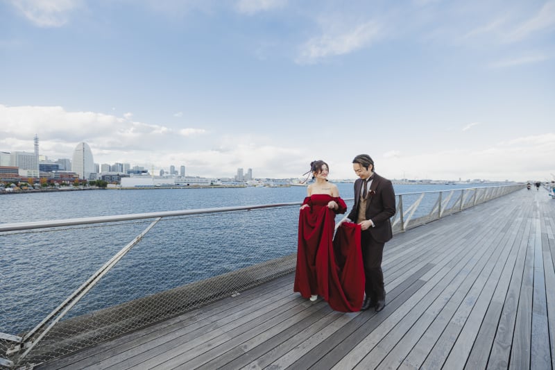 【横浜で記念日】汽笛が二人のスタートを祝う横浜のロケーションで美しい一枚を