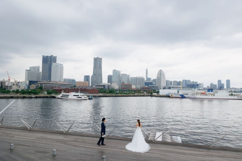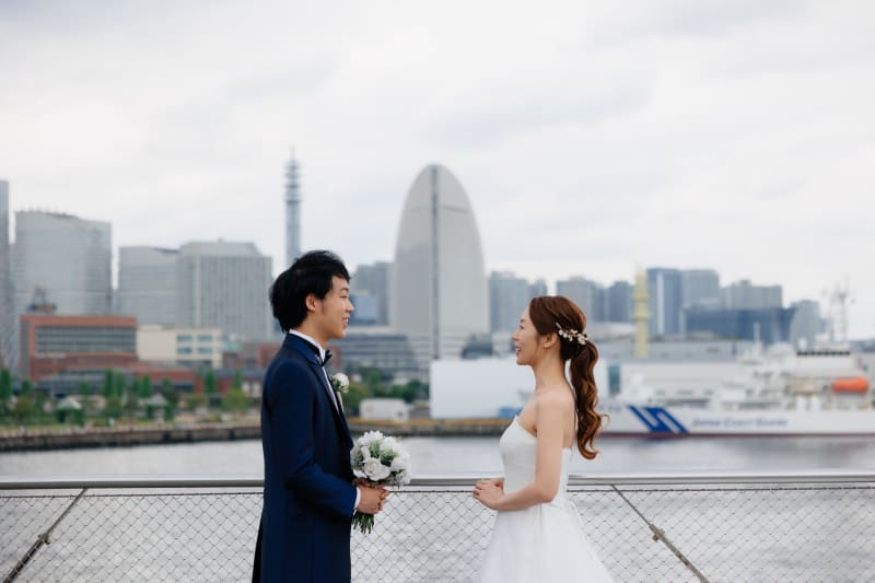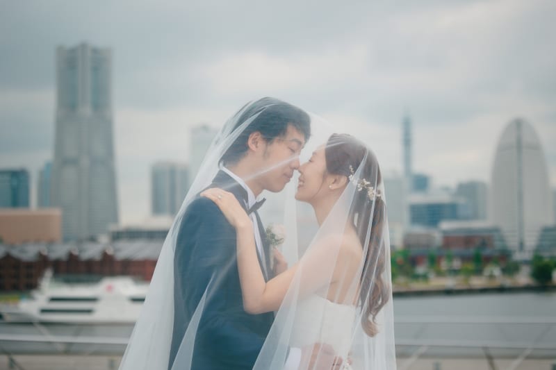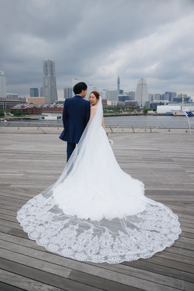 屋内庭園スタジオでは様々な季節の雰囲気で撮った写真を、洋装での大さん橋ではヴェールを使ったロマンチックな写真に注目です!!