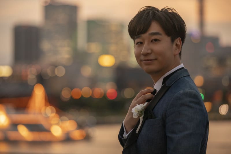 新郎様はブルーアワーの時間で。柔和なお人柄が出ています。