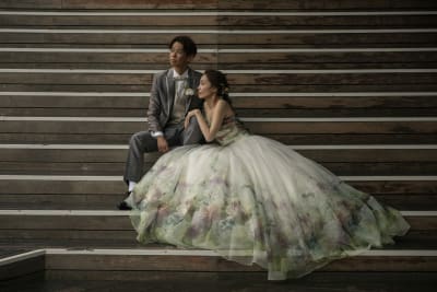 長いチュールがお二人を囲むように舞っているのもとっても美しいですね✴︎︎︎