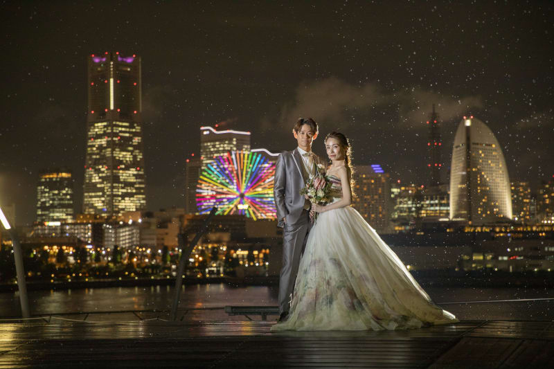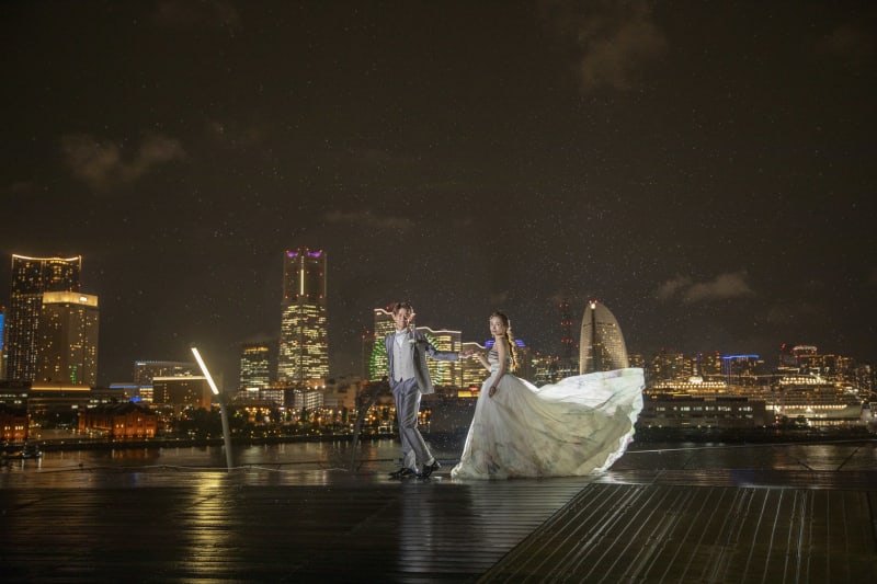 横浜のみなみなとみらいの景色を一望できる場所で撮影。