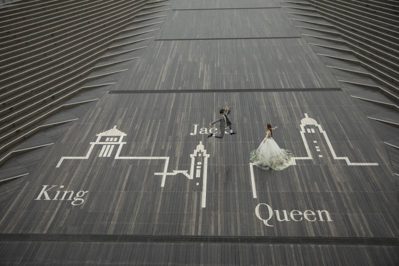 まず初めに、キングとクイーンの文字が地面に描かれているアートチックな場所での撮影です。