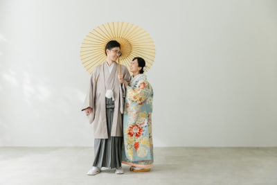 今回は、白いシンプルな背景の中で和装と洋装それぞれのお衣装で撮影させていただきました!