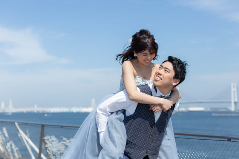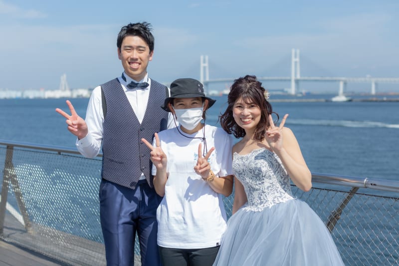 この写真こそ、「みなとみらい」ですね!! 二人で撮るのも良いけれど、ソロカットも素敵でした