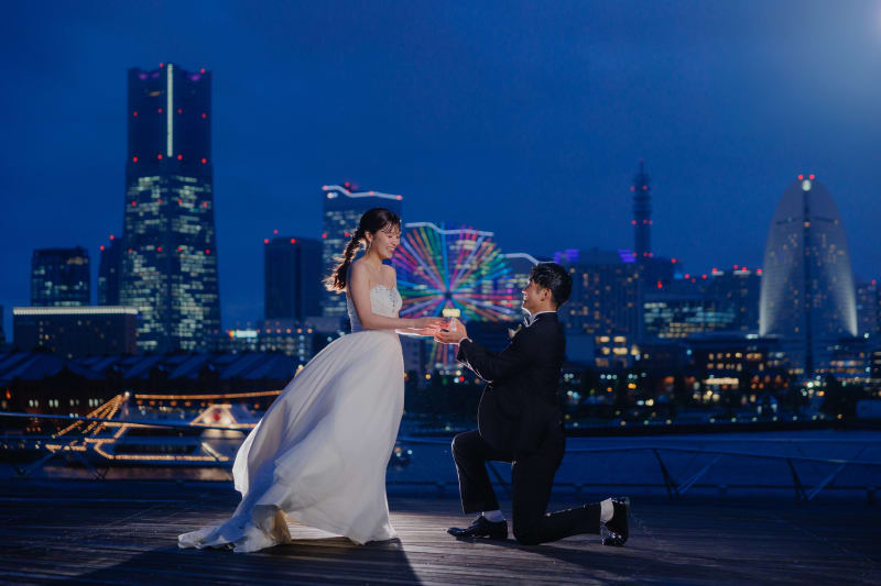 大桟橋は夜景メインの撮影でみなとみらいの夜景をバックに華やかな写真をたくさん撮りました♪