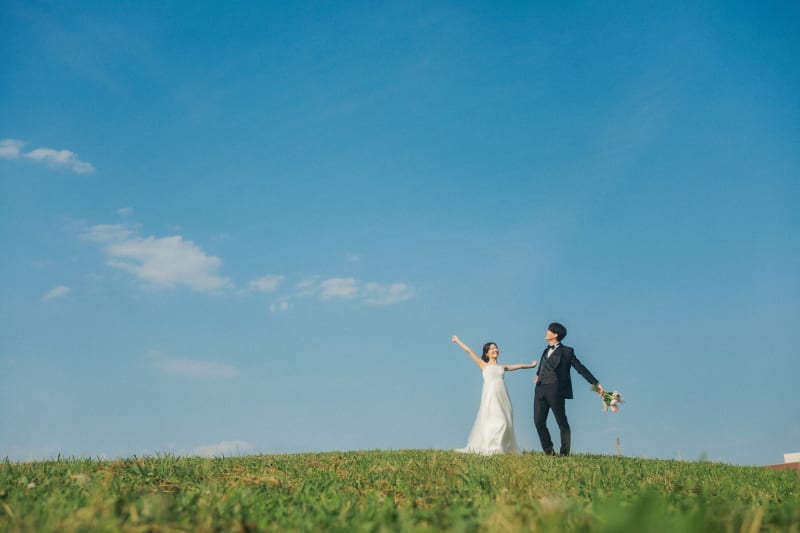 優しい空の青色がお二人の雰囲気と合っていてほっこりする時間が流れていました✨