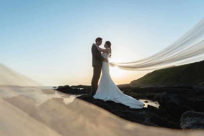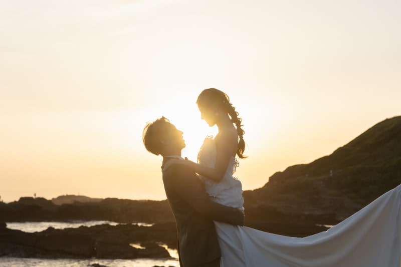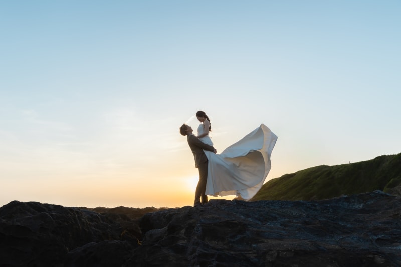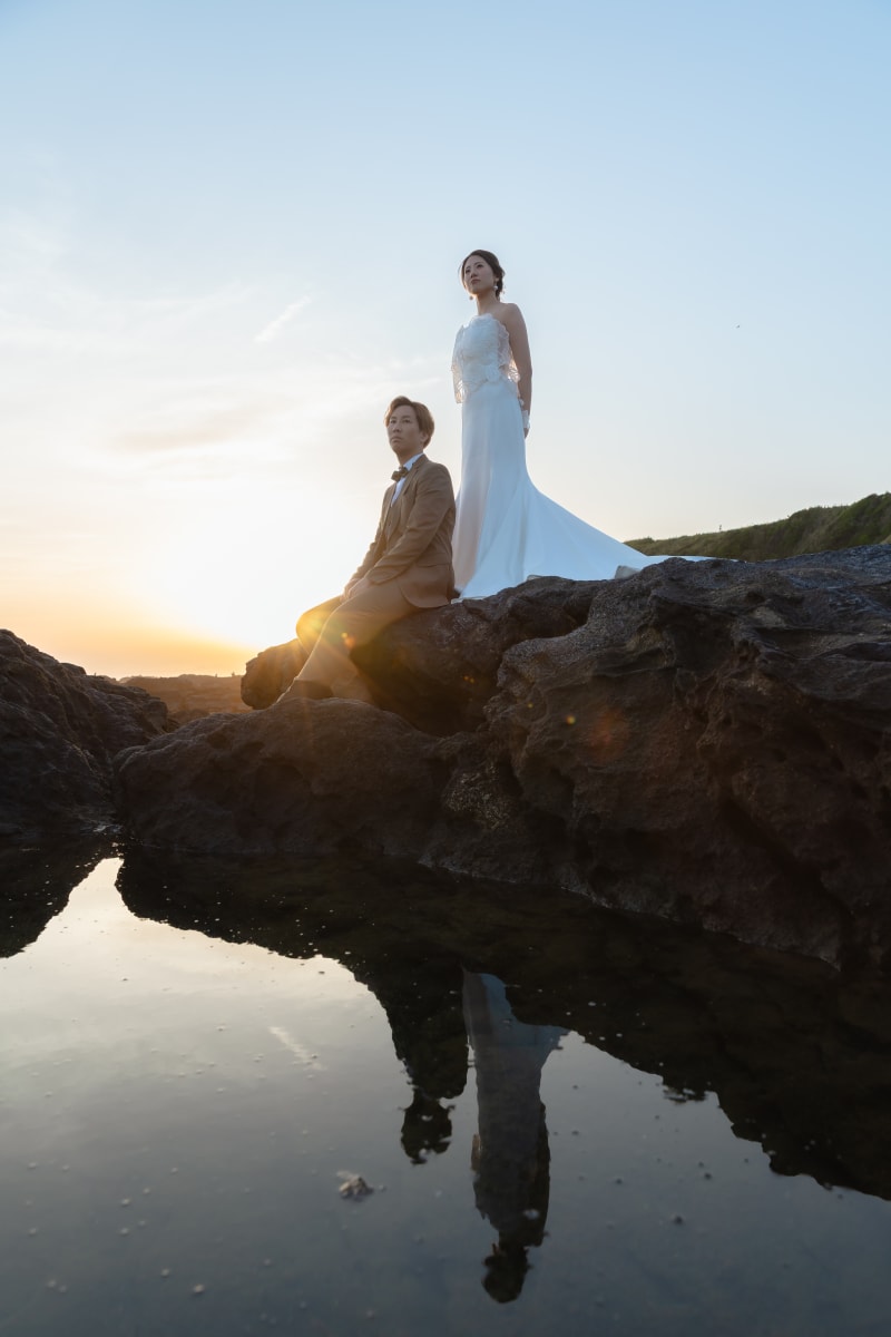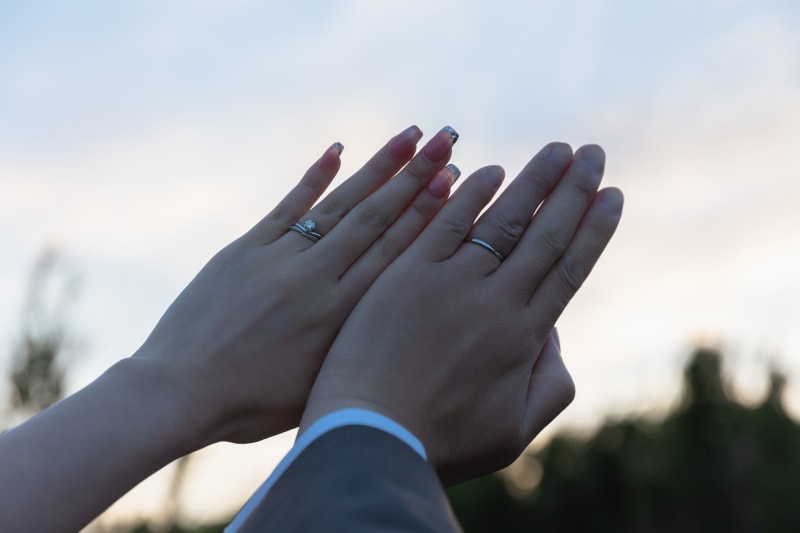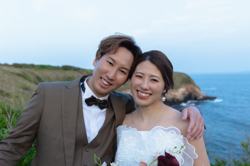 青空と夕陽にオレンジ色が混ざり合う空はお二人を祝福してくれているようでしたね^^