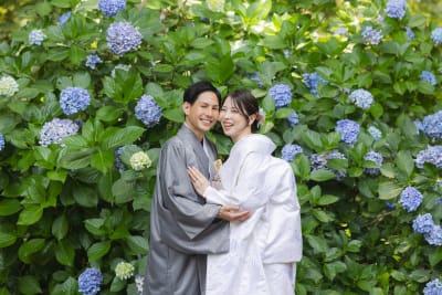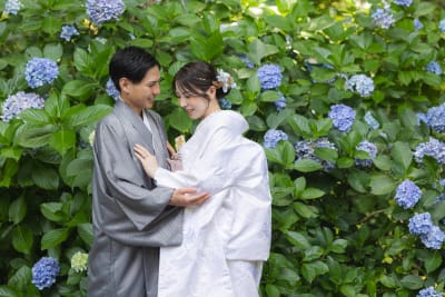 この日は紫陽花がとても綺麗でした!二人並んで歩く姿も素敵です