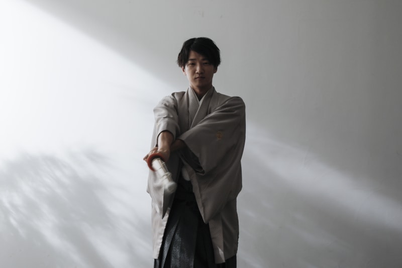元剣道部で竹刀を持ってこられた新郎様。竹刀がしなやかにしなりました。
