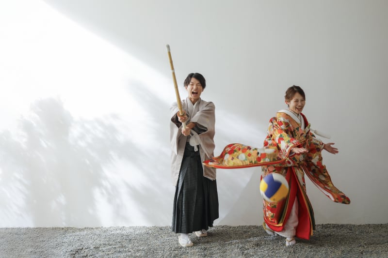 剣道VSバレーというコンセプトで撮りました。新婦様の躍動感が素晴らしい。
