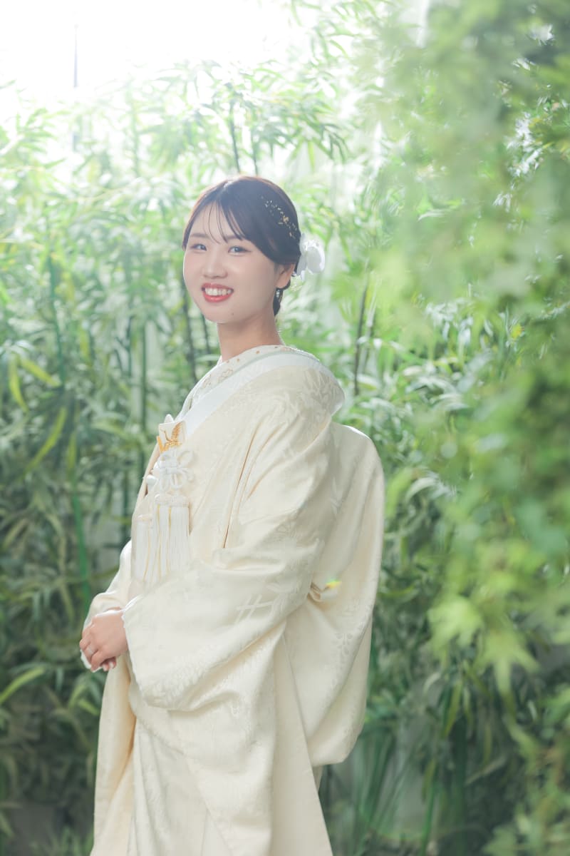 夏の雰囲気が漂う竹林セットで。笑顔が可愛らしいお嫁さん。