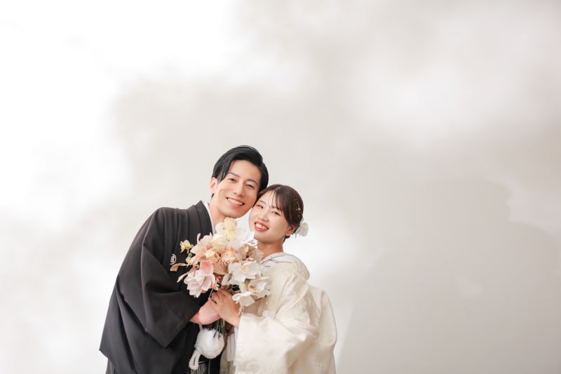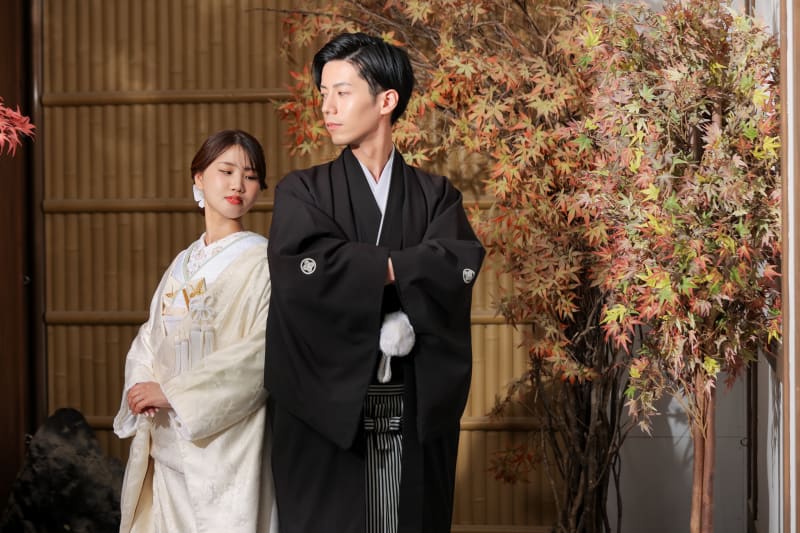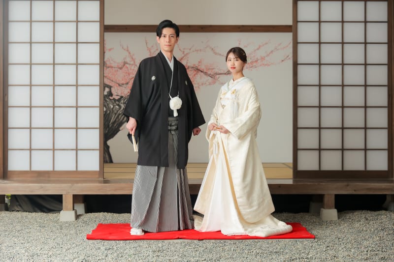 白無垢&紋付で伝統的に。和室のセットがロケーションみたいに見えますよね♪