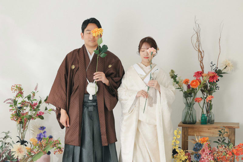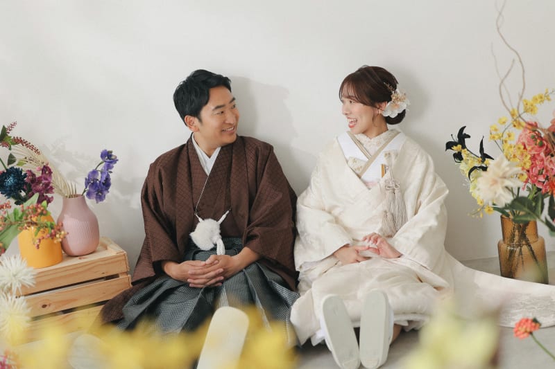 座ったり立ったり、どんなお花を使うかもお二人の自由です!お二人らしい写真を一緒に作りませんか?