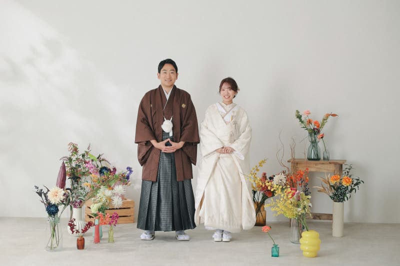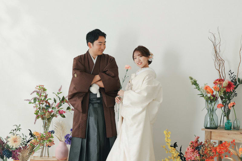 和装は屋内庭園での撮影が多いですがし、白壁やドライフラワーをたくさん用意しているので、シンプルに可愛らしくお写真を残したい方にはとってもおすすめです!!